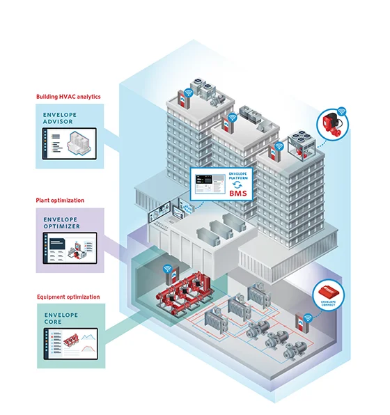 Combinada con Envelope Core de Armstrong Fluid Technology, Wrench permite el flujo de datos en tiempo real a través de la plataforma Envelope. Envelope Core rastrea y analiza los datos del equipo para detectar problemas de forma anticipada y ofrecer información procesable. Las mejoras en el Controlador de Bombas Design Envelope (DEPC) permiten que estas herramientas se integren con la plataforma Envelope.